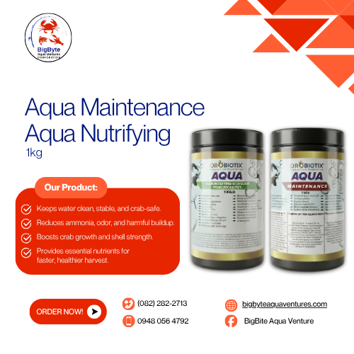 Crabs are highly sensitive to bottom-sludge and fluctuating pH levels. The Aqua Maintenance component works to break down unconsumed feed and fecal matter at the pond floor. This prevents the “black soil” effect that often leads to disease outbreaks. Meanwhile, the Aqua Nitrifying component introduces beneficial bacteria that convert harmful ammonia and nitrites into harmless nitrates.