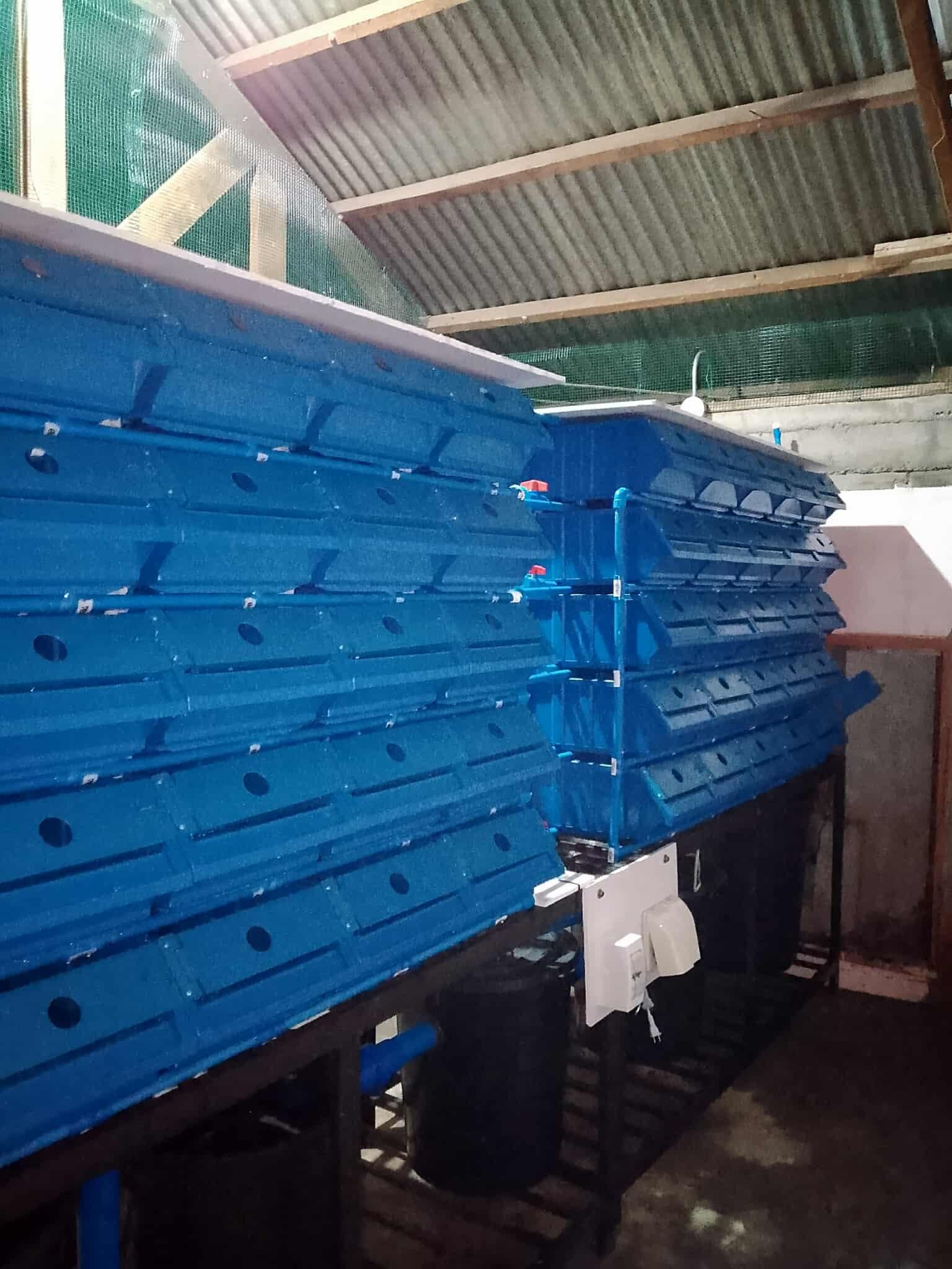 throughout the vertical structure. This creates an efficient, sustainable farming operation that can be established almost